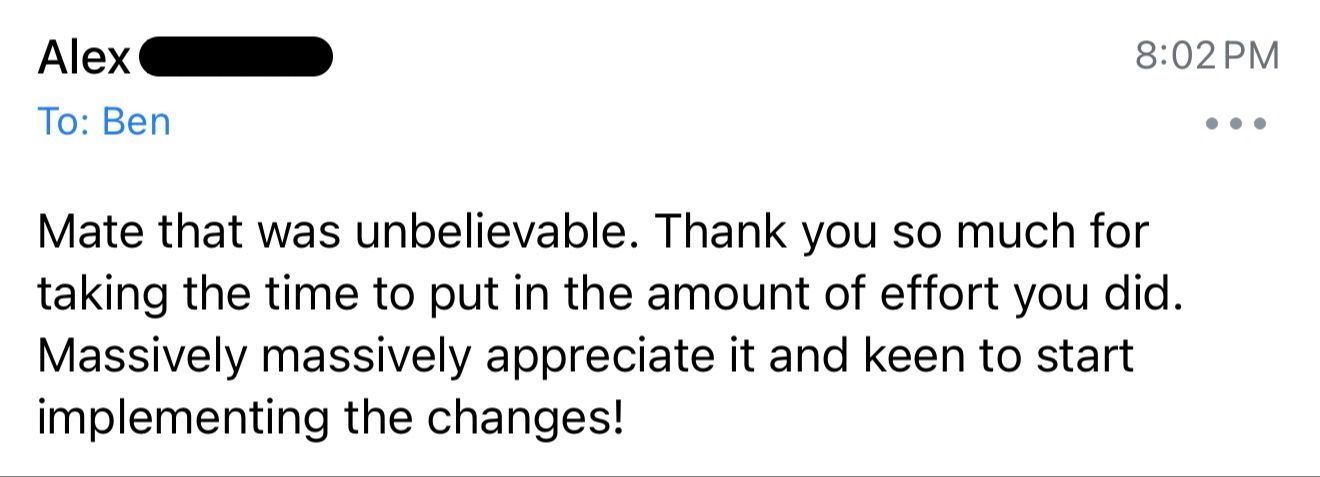 You'll receive a list of priority fixes, so you know what to tackle first, what to stop wasting time on, and what small changes will make the biggest difference immediately.