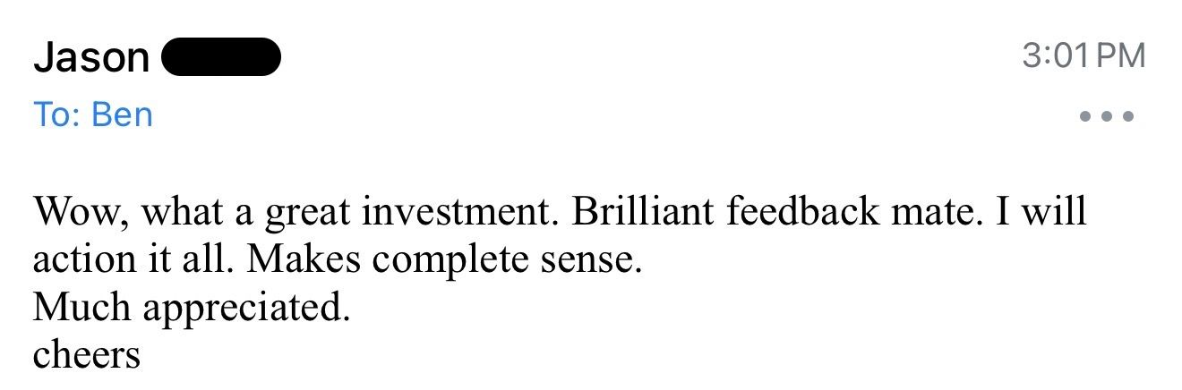 Not a checklist. Not a template. Not cookie-cutter feedback that could apply to anyone.